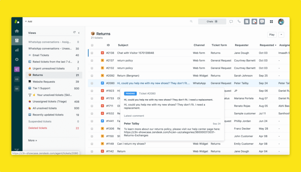 At the heart of Zendesk’s appeal is its robust ticketing system. The platform automatically converts customer queries from various channels into manageable tickets, which can be assigned to agents and tracked through their resolution. This ensures no customer concern falls through the cracks. Zendesk’s support suite includes tools for live chat, voice, email, social media, and even SMS, allowing customers to reach out on the platform of their choice. A powerful AI and automation engine helps reduce agent workload by automatically tagging tickets, suggesting help articles, or even responding to simple queries with bots. Zendesk also includes a knowledge base module, which businesses can use to create self-service portals and help centers, further reducing the volume of support tickets.